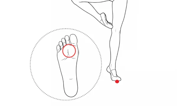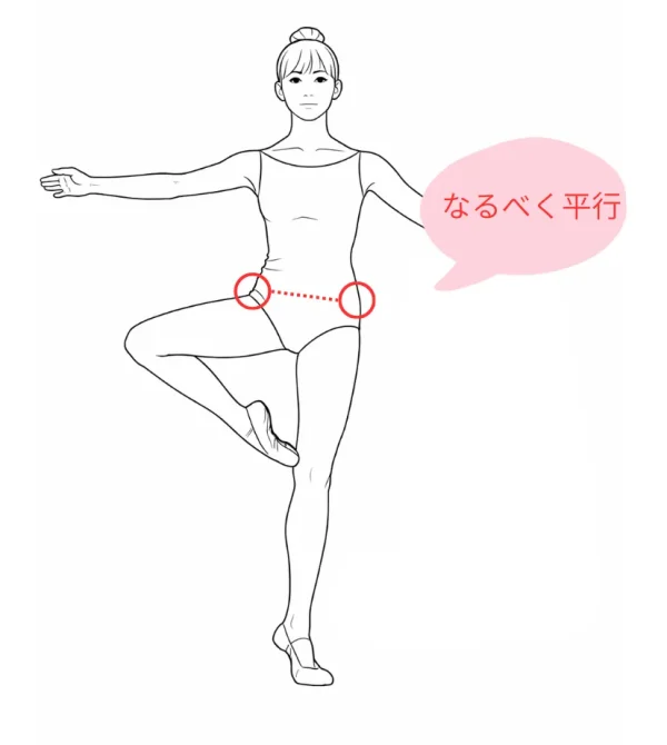 パッセ側のの母趾球で床を感じてから上げる(軽く蹴る)。